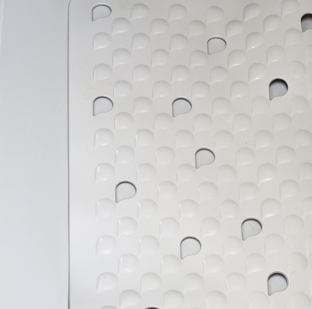 Linea di tappeti vasca e doccia dal sapore romantico. La delicata lavorazione superficiale con disegno a gocce a rilievo funziona come antiscivolo durante l’utilizzo. Le numerose ventose nella parte sottostante permettono la massima aderenza del tappeto e un veloce scolo dell’acqua per evitarne il ristagno e la formazione di sporco e cattivi odori.