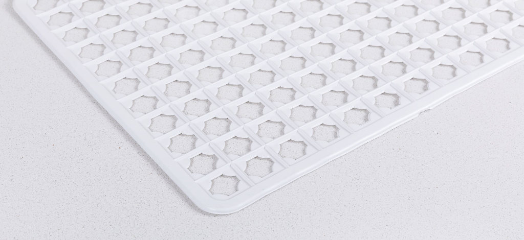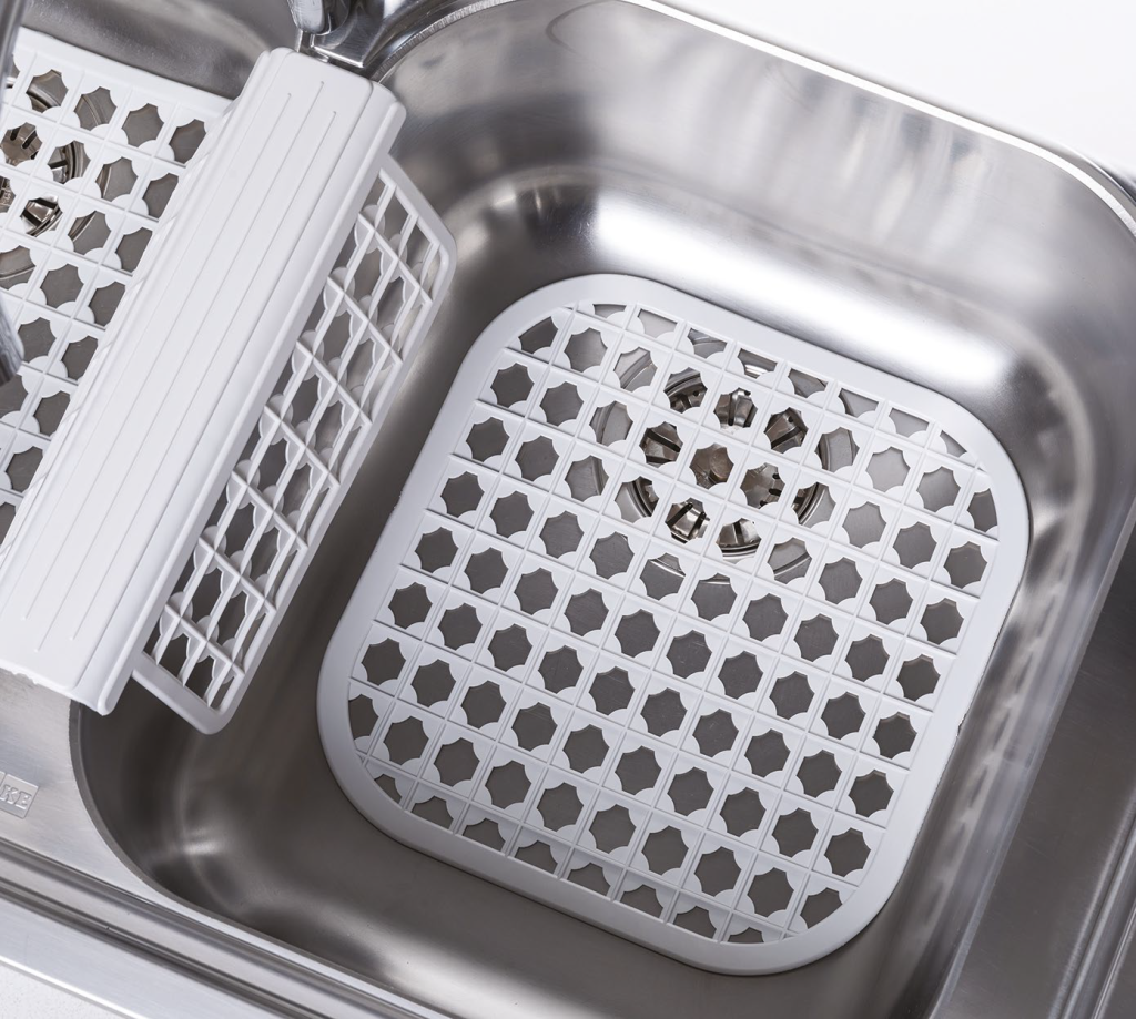 A chi ama il connubio tra modernità e tradizione è dedicata la serie Nigella. Forme geometriche lineari si fondono con un’estetica dal sapore classico per dare vita ad un tappeto lavello adatto a tutte le generazioni. Il disegno regolare del tappeto Nigella consente un rapido scolo dell’acqua per garantire la massima pulizia del lavello.